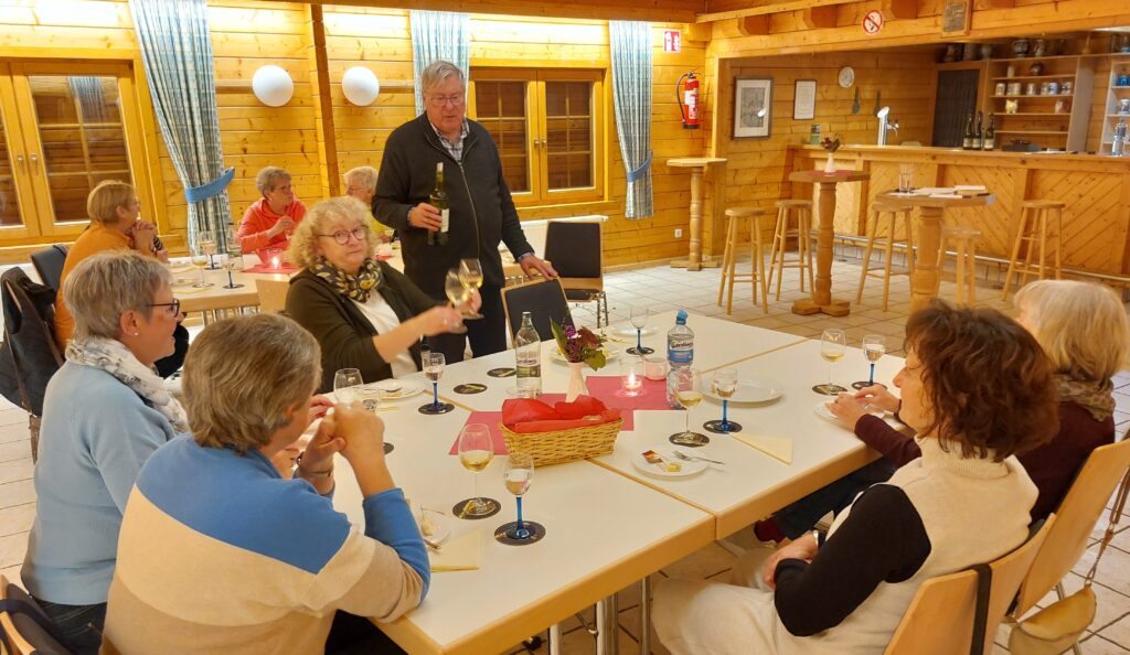 Zu jeder Käsesorte wurde der passende Wein gereicht. Die Gruppe hatte den Weinkenner des Heimatbundes schlechthin, Volker Odenbach, eingeladen. Er stellte die Weine, wie von vielen Weinabenden bereits gewohnt, gekonnt vor und animierte zum einen oder anderen Gläschen.